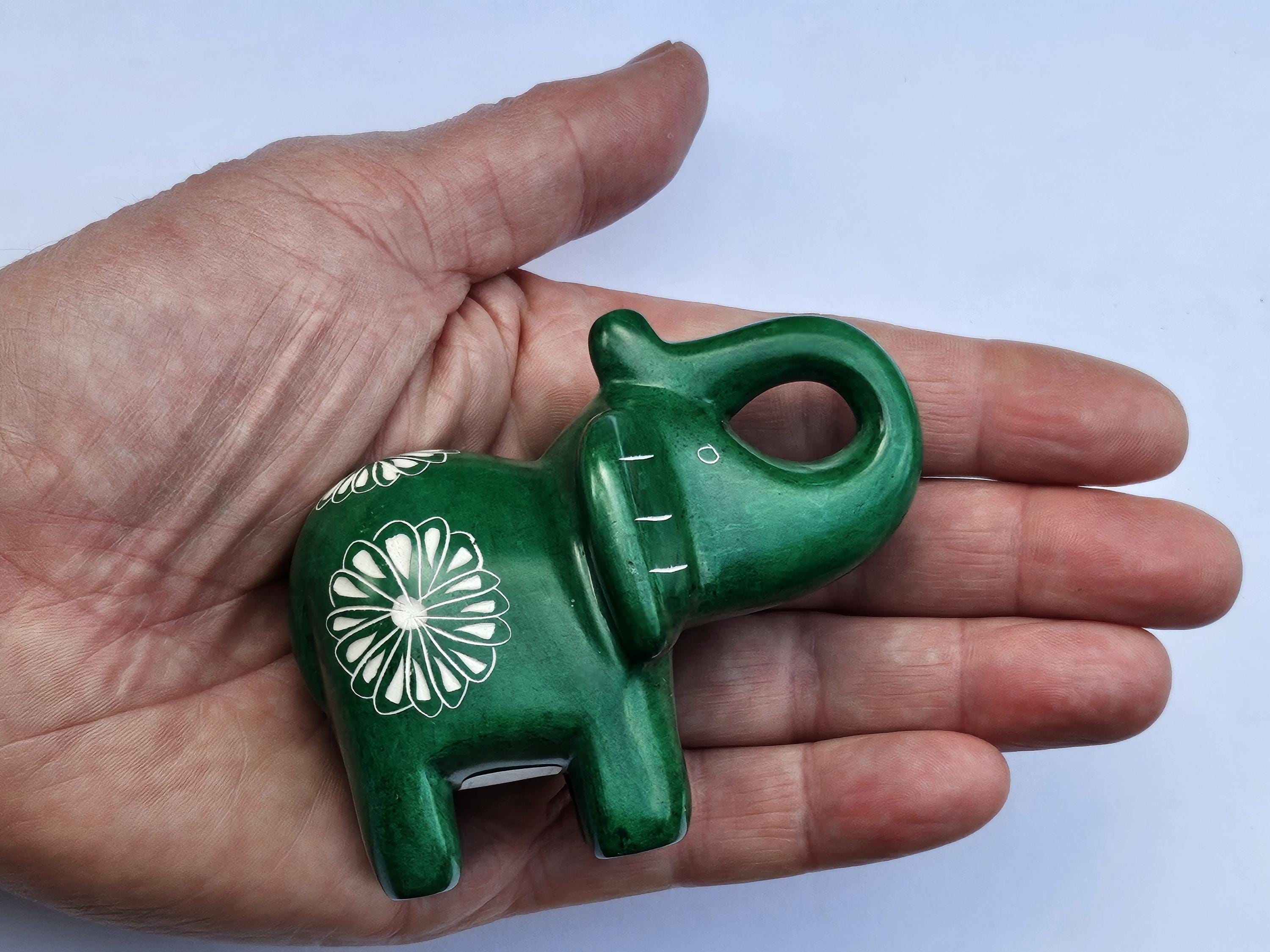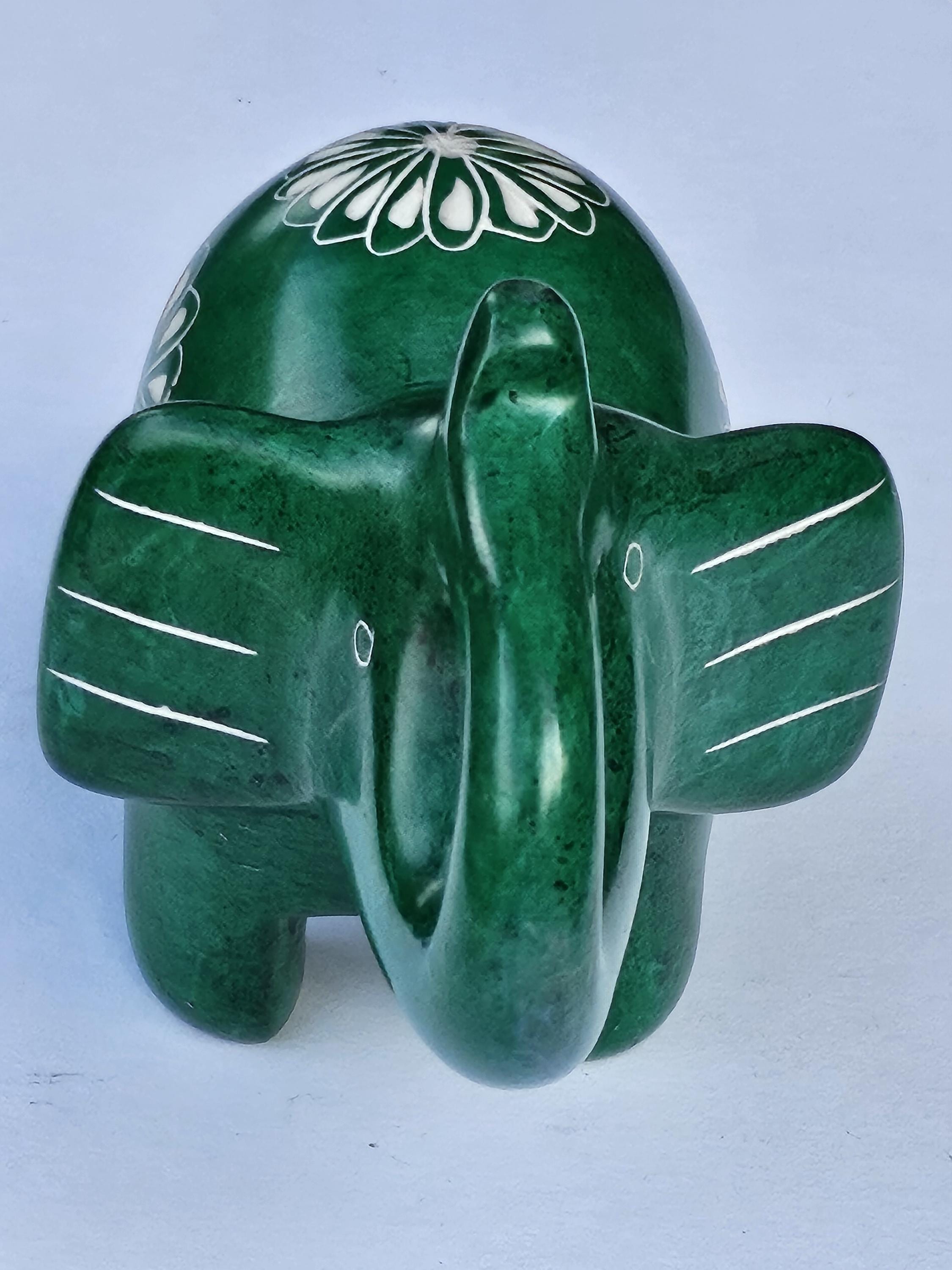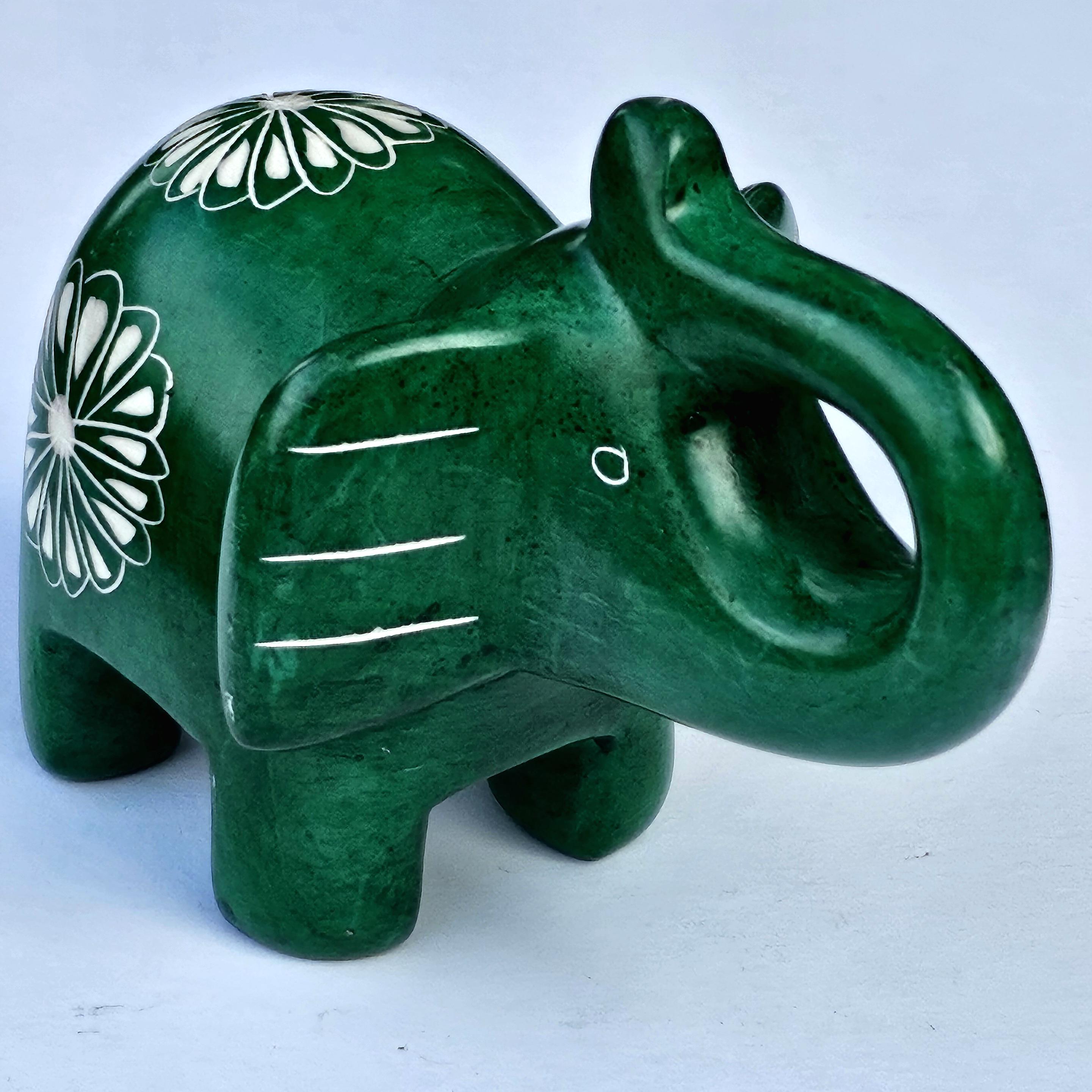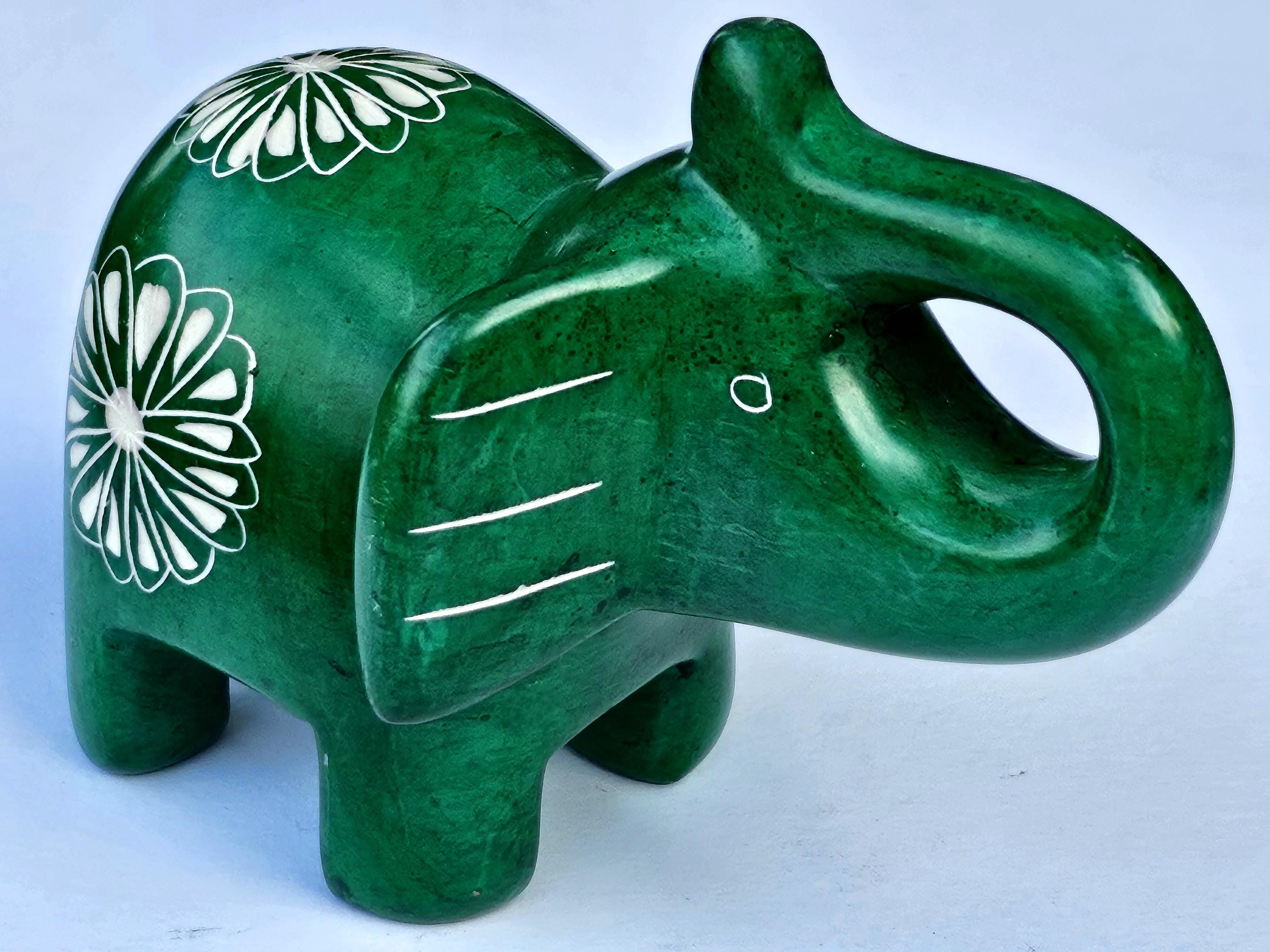 Hand Carved Green Soapstone Elephant Figurine with Trunk Up, Lucky Elephant Statue, Elephant Lover Gift For Her, Fair Trade Kenya