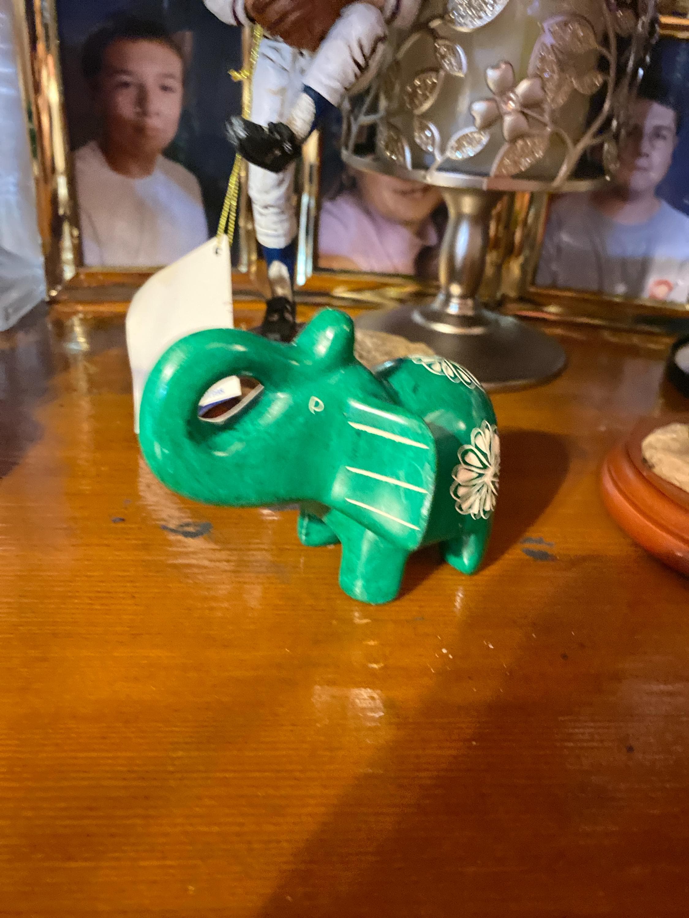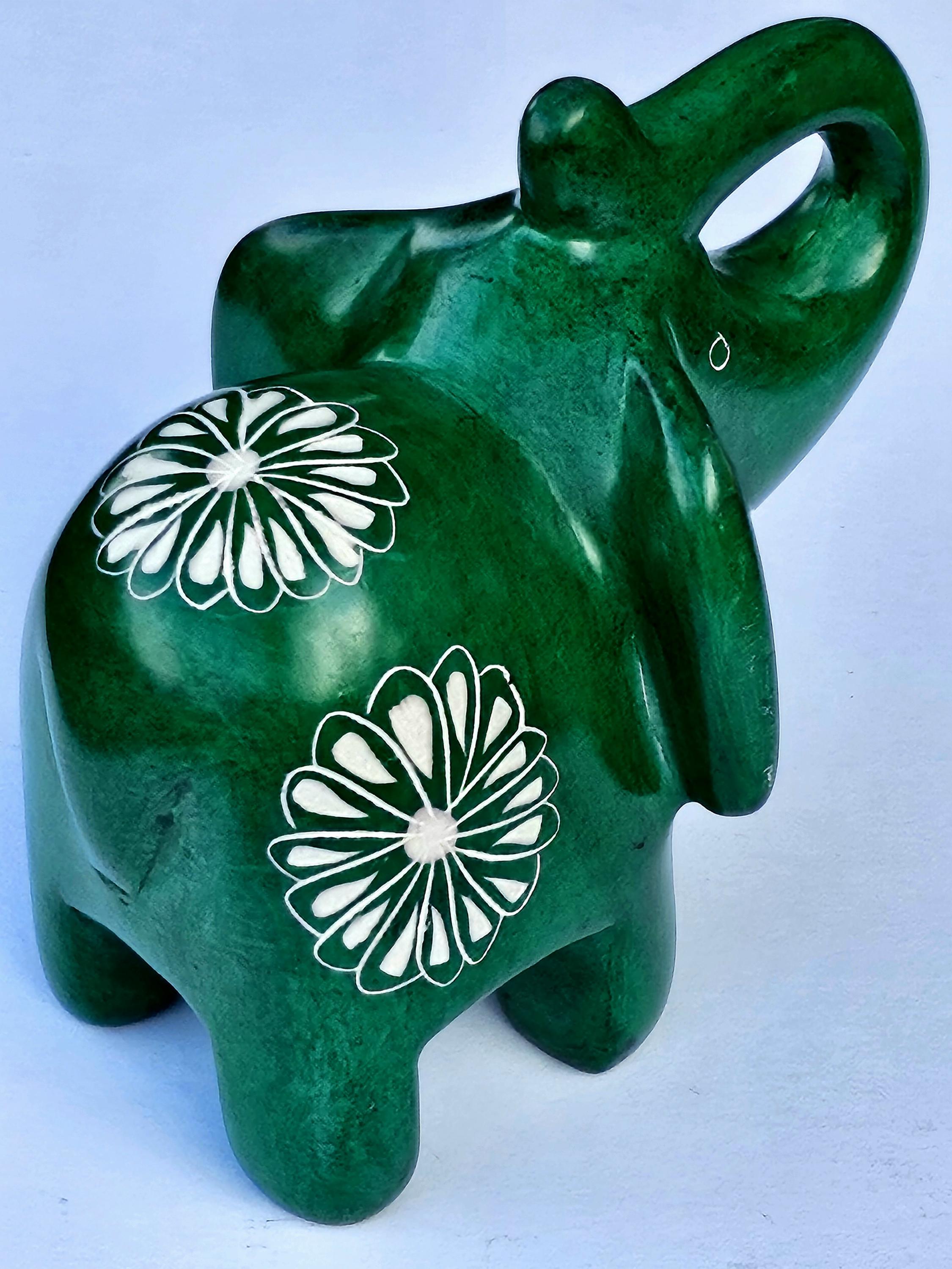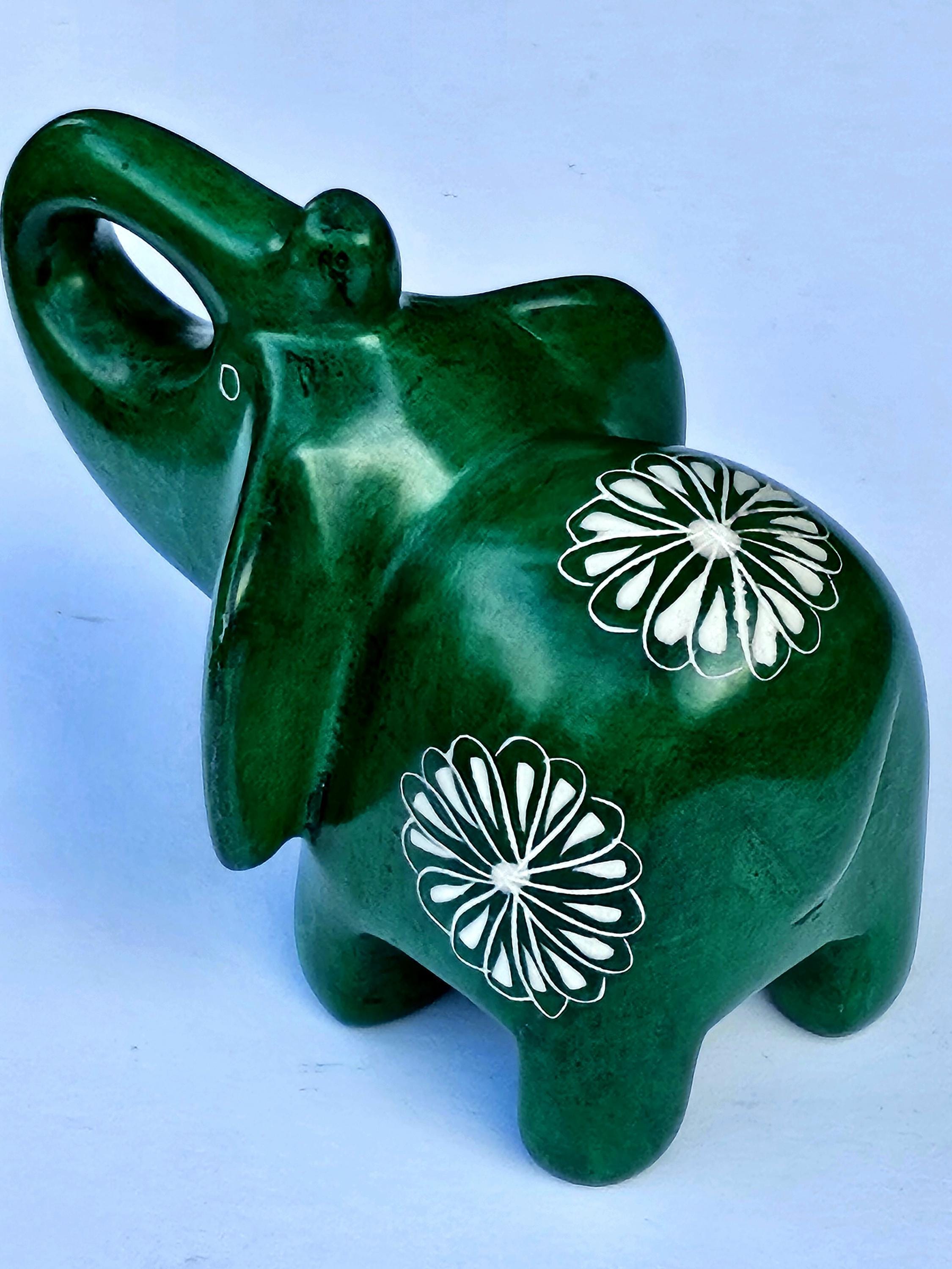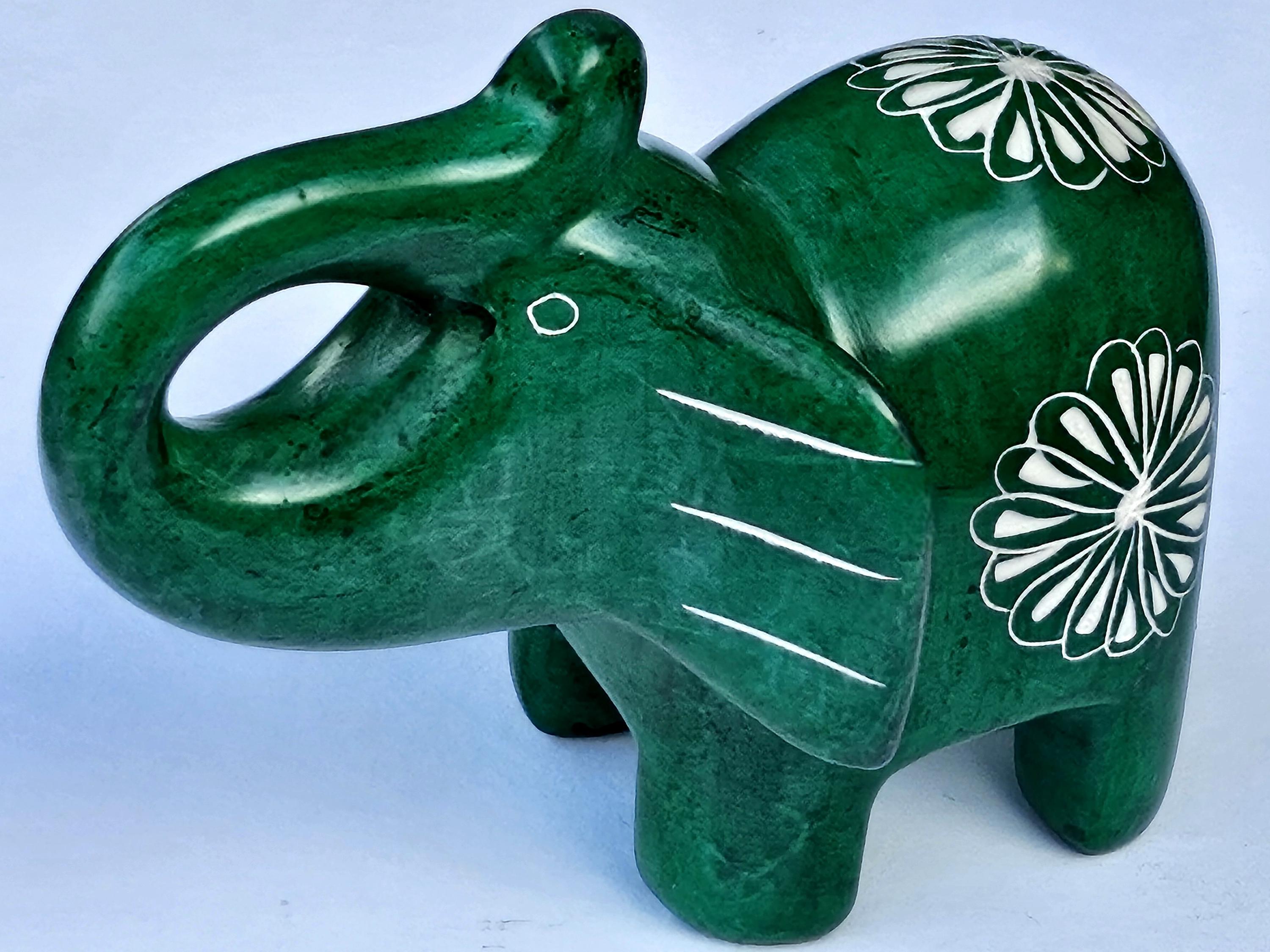 Hand Carved Green Soapstone Elephant Figurine with Trunk Up, Lucky Elephant Statue, Elephant Lover Gift For Her, Fair Trade Kenya
