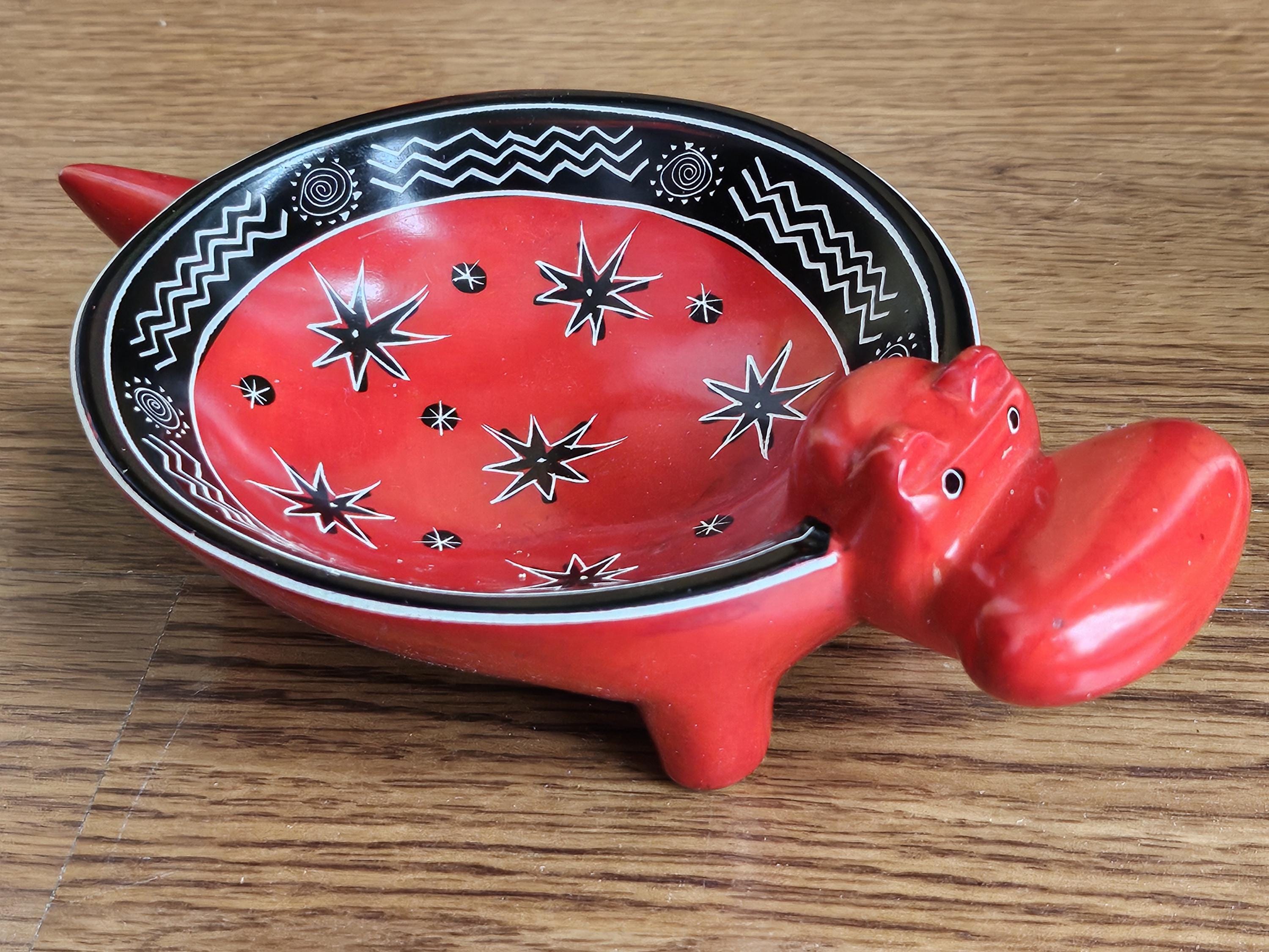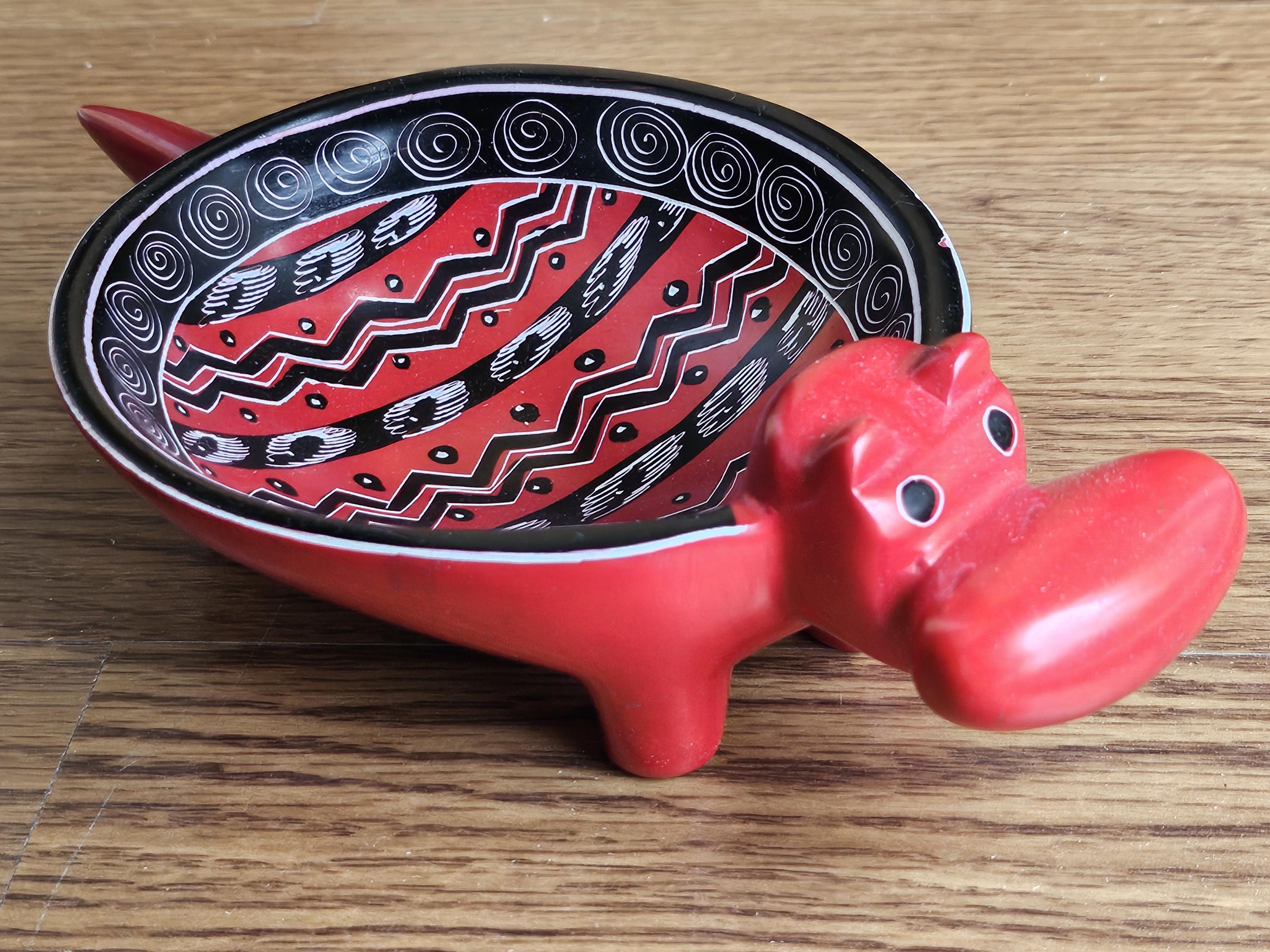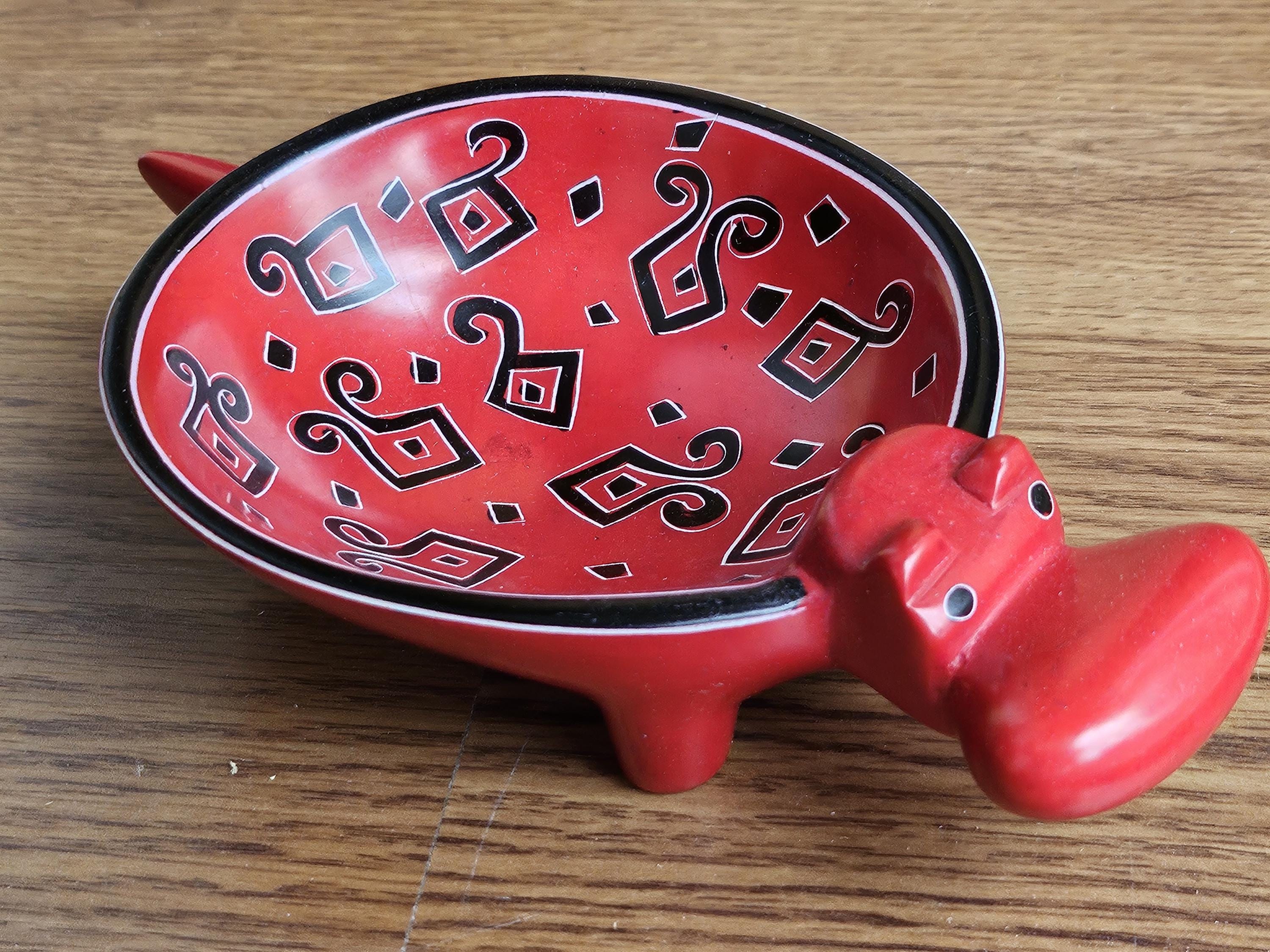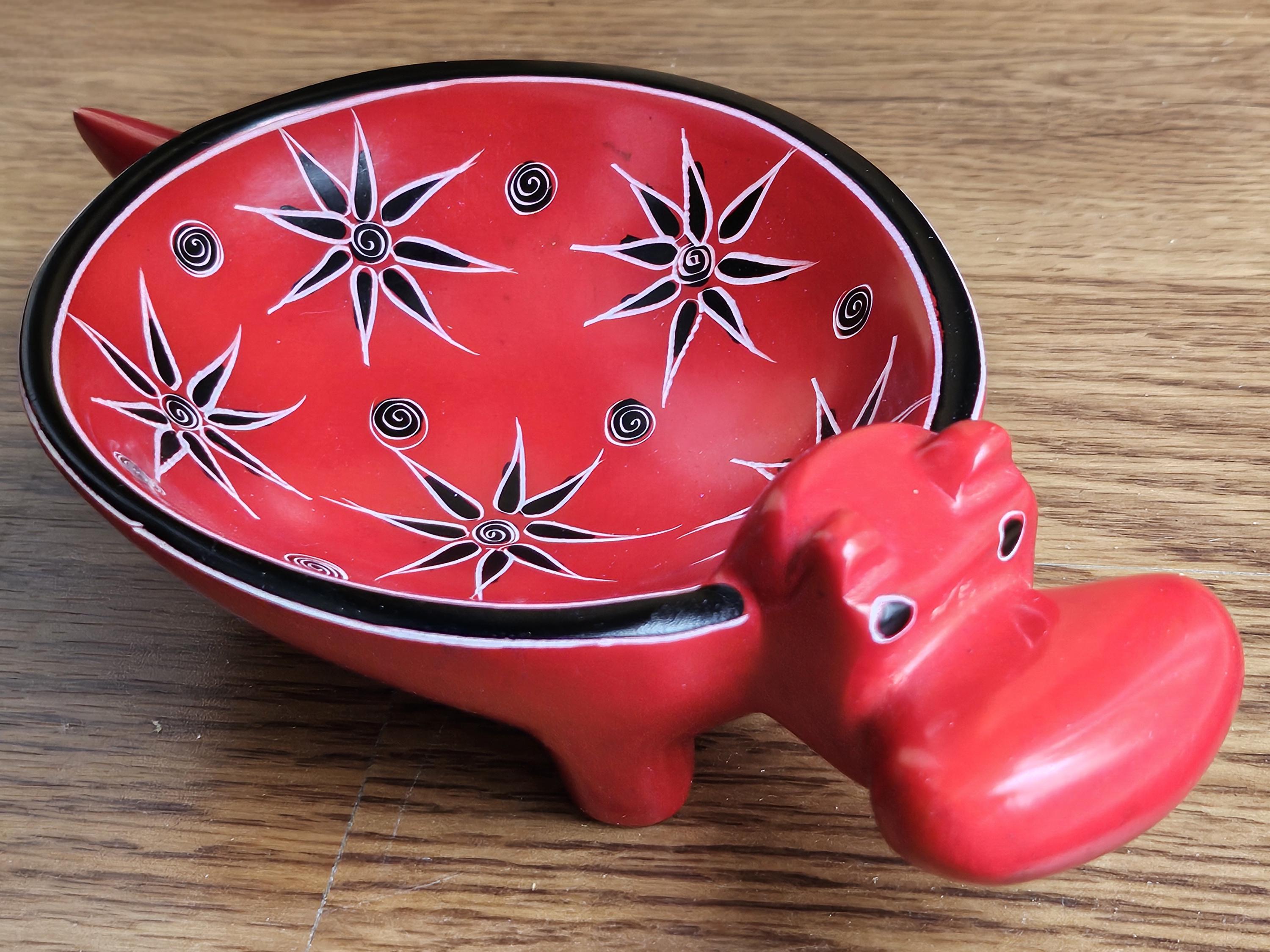 These adorable red hippo dishes are hand-carved from soapstone, also known as Kisii stone, as it is hand-quarried and carved in the Kisii region of Kenya, and then painted with bright eco-friendly non-toxic paint, and polished to a shine. Great as a unique gift for any hippo lover, or as a gift to yourself!