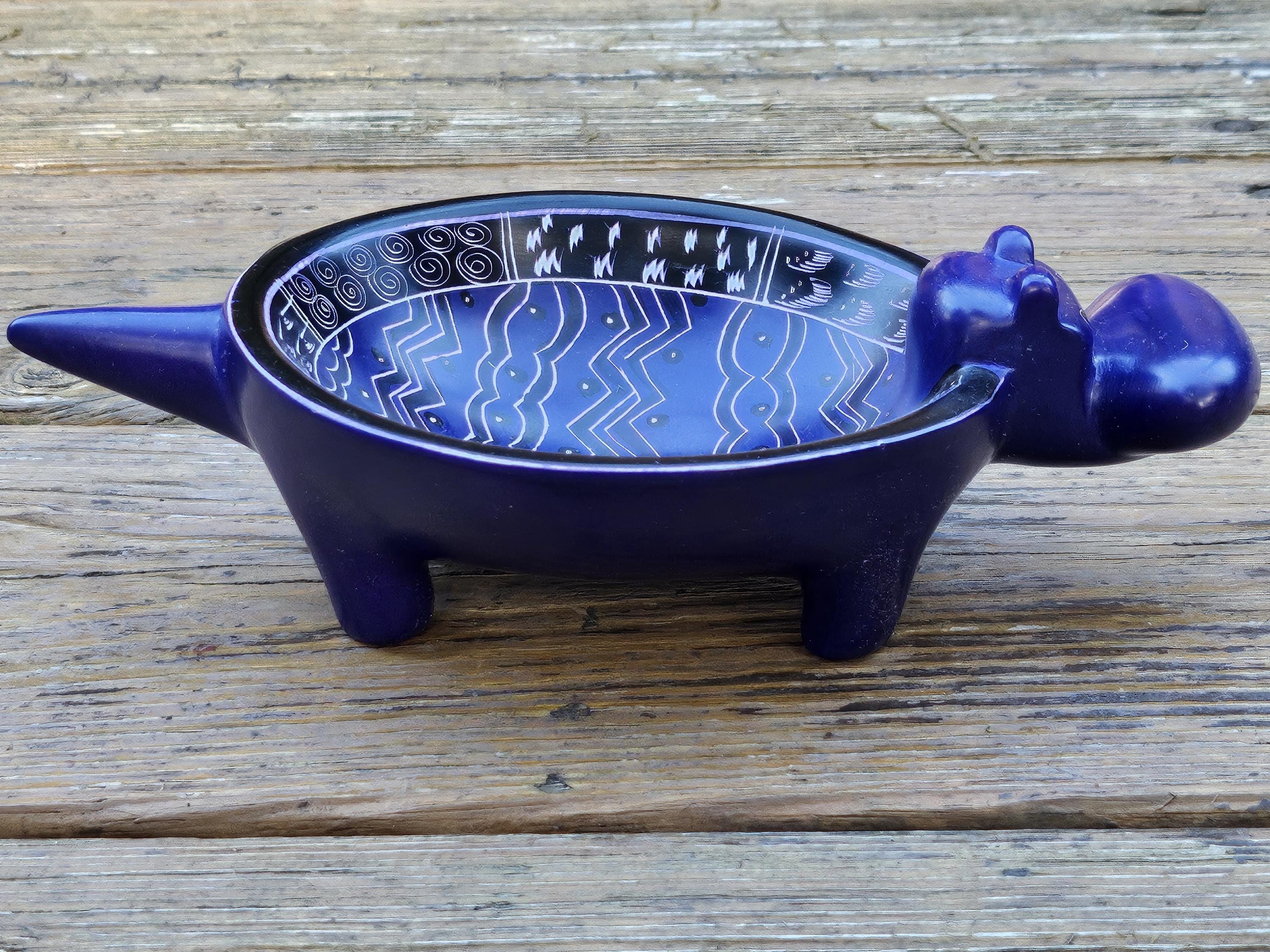 These adorable purple hippo dishes are hand-carved from soapstone, also known as Kisii stone, as it is hand-quarried and carved in the Kisii region of Kenya, and then painted with bright eco-friendly non-toxic paint, and polished to a shine. Great as a unique gift for any hippo lover, or as a gift to yourself!