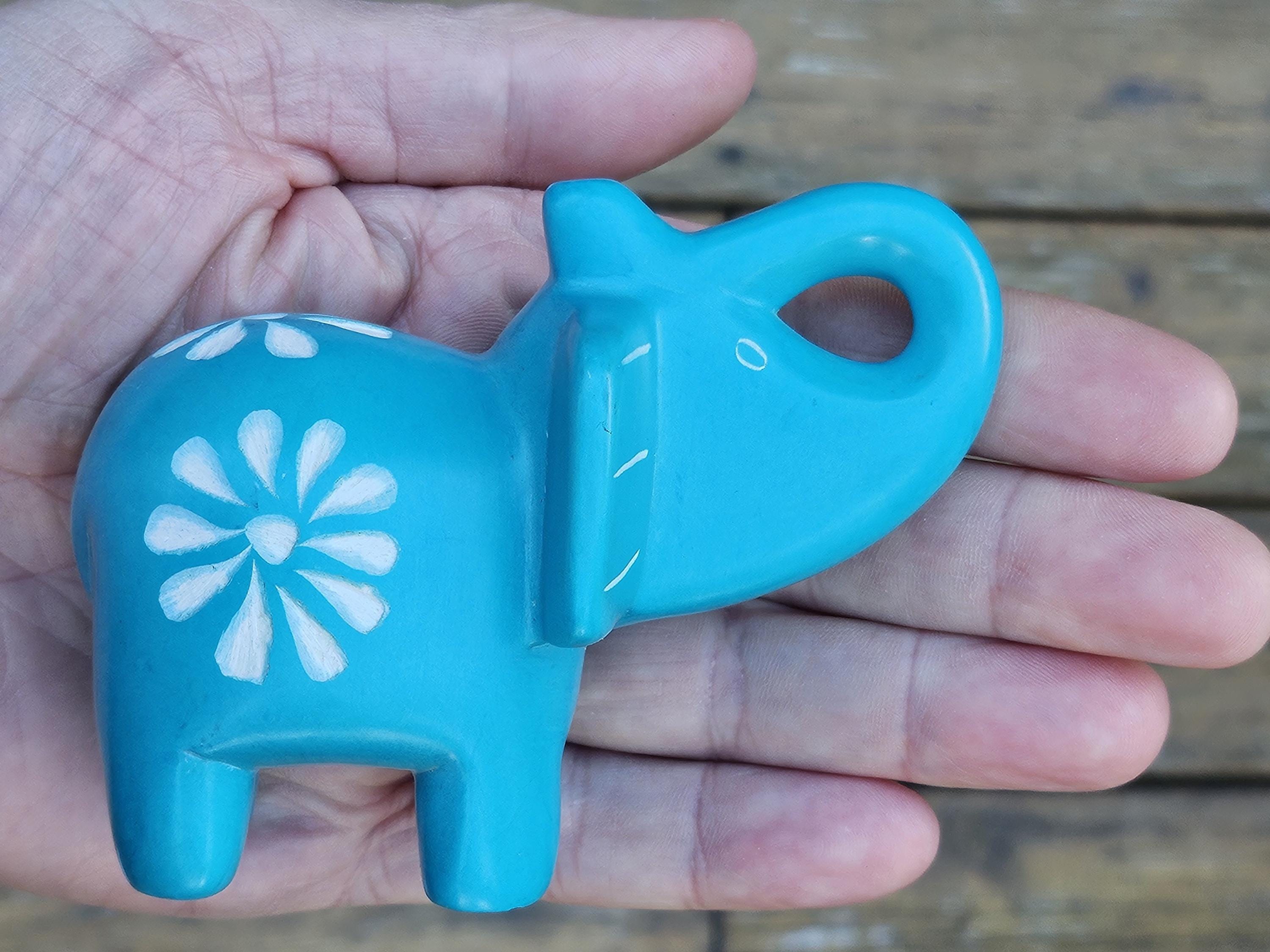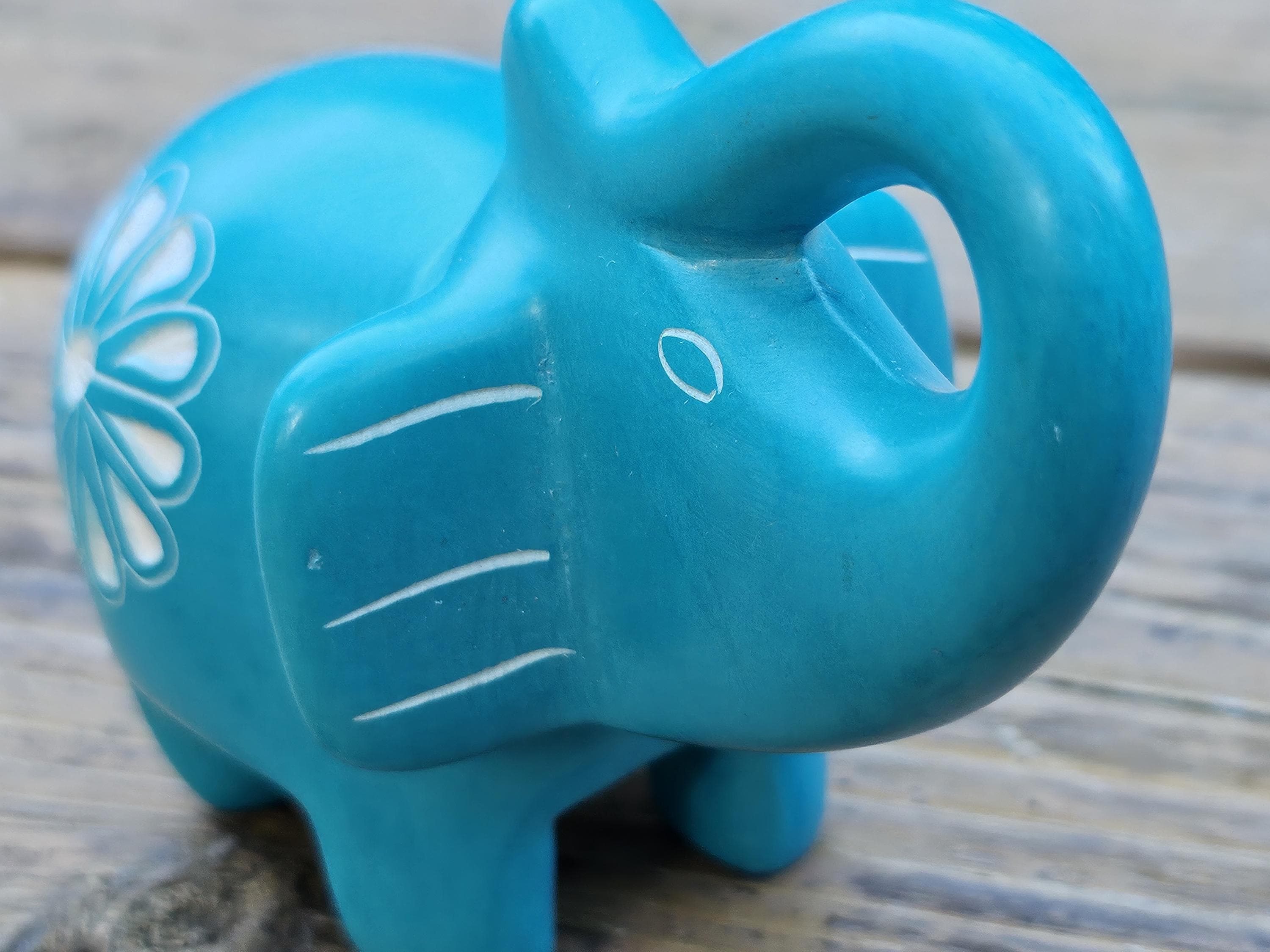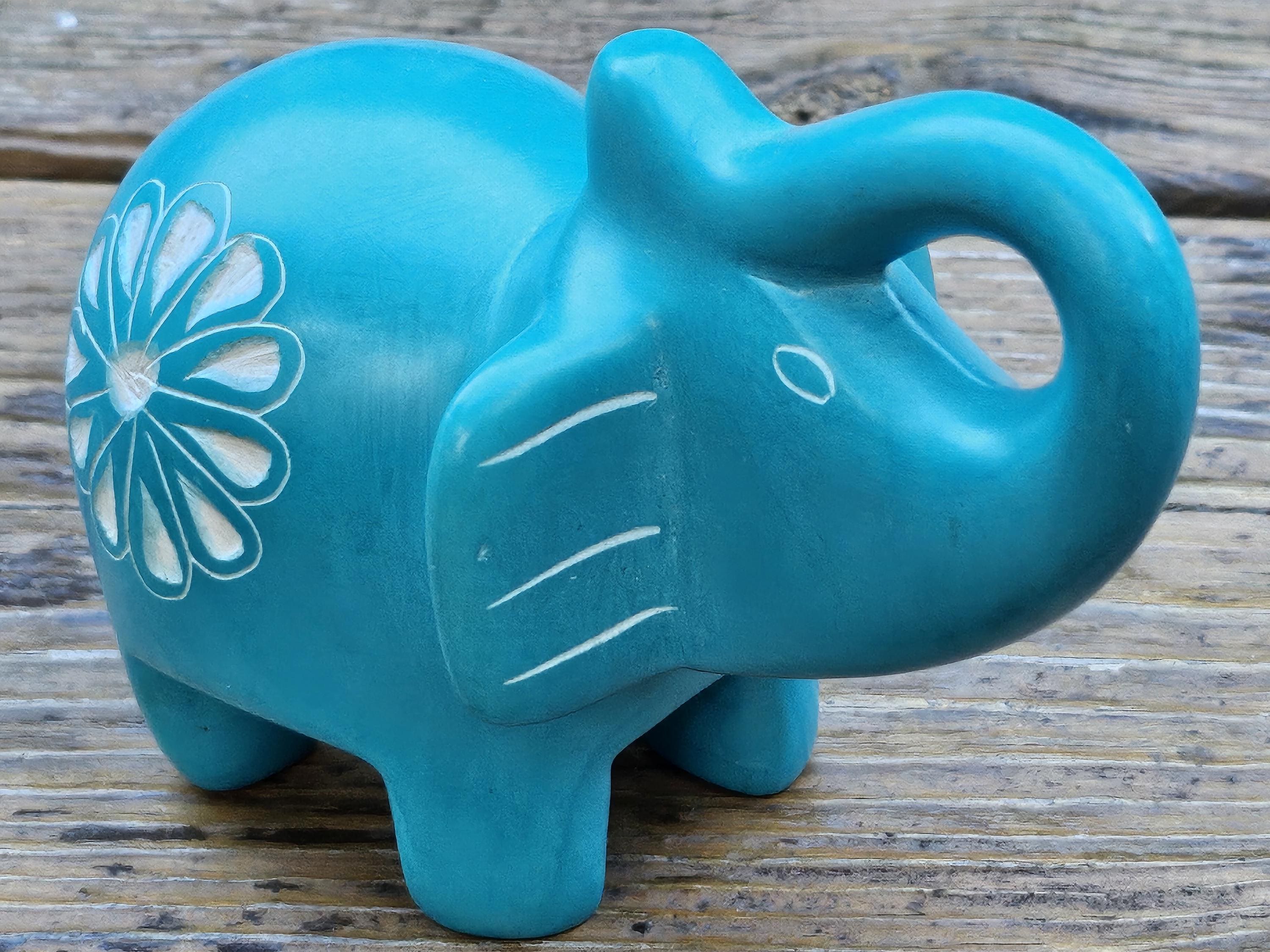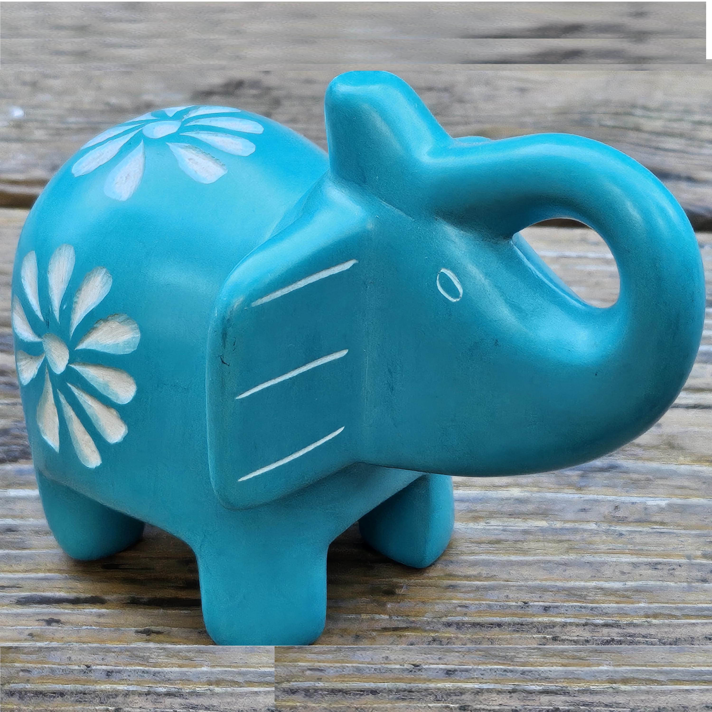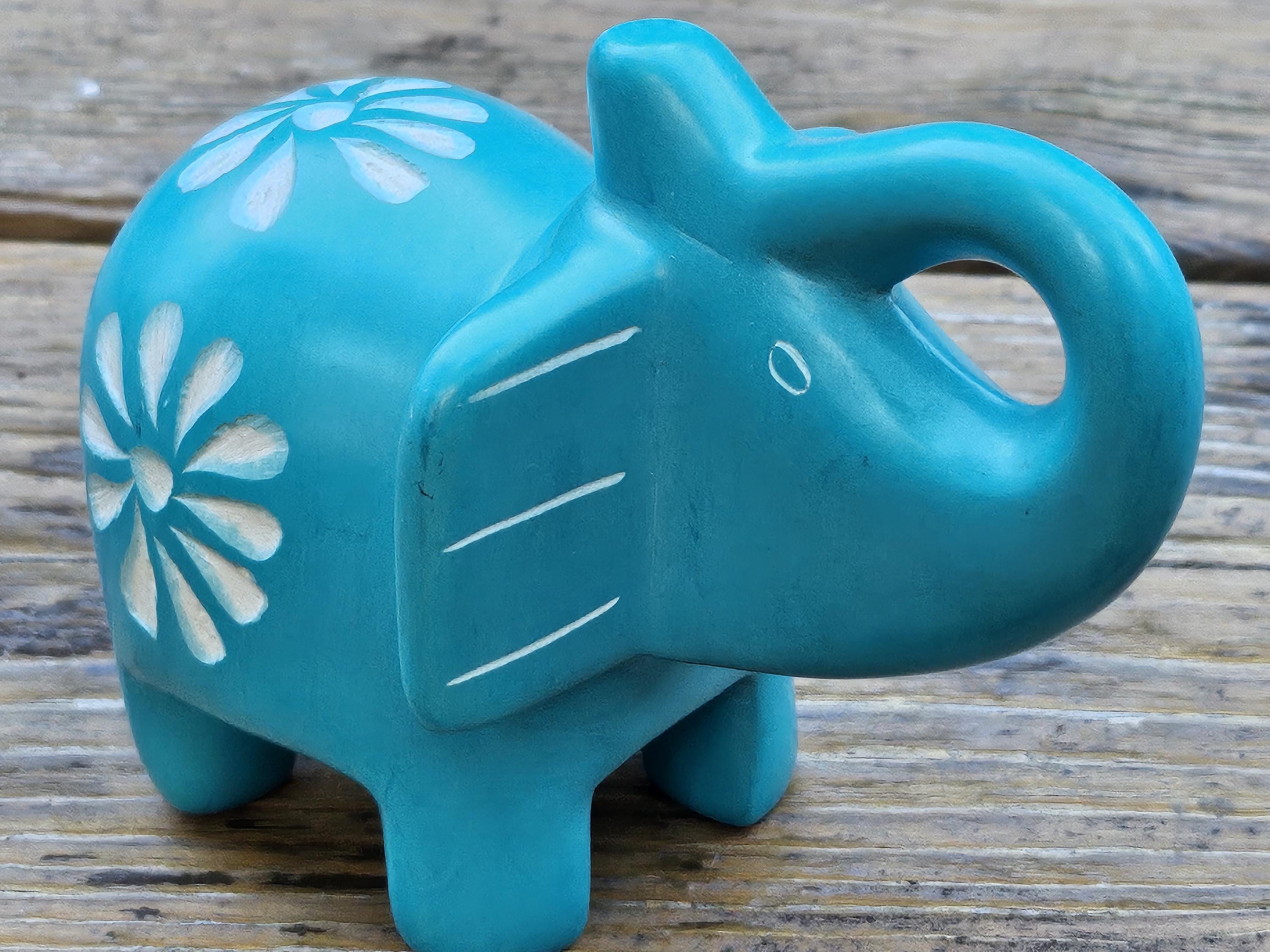 These colorful soapstone elephants are hand-carved in the Kisii region of Kenya. The stone is hand-quarried before skilled artisans carve the elephants, then it is sanded smooth, and painted with eco-friendly paint.